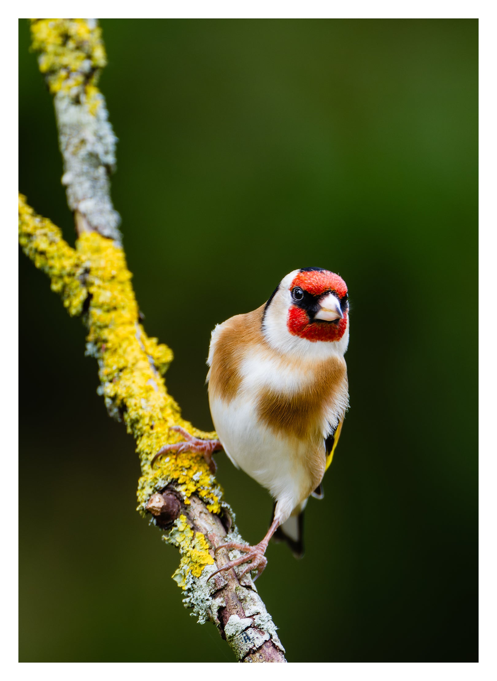 The Goldfinch, or European Goldfinch (Carduelis carduelis), is a beautiful finch with a red face and head and a yellow patch on its wings. They are often associated with the teasel, for feeding on which their elongated finch beak is particularly well suited. A woodland edge bird they are common in gardens and parks. They live and breed in loose groups and the collective term for a group of Goldfinch is a ‘charm’.