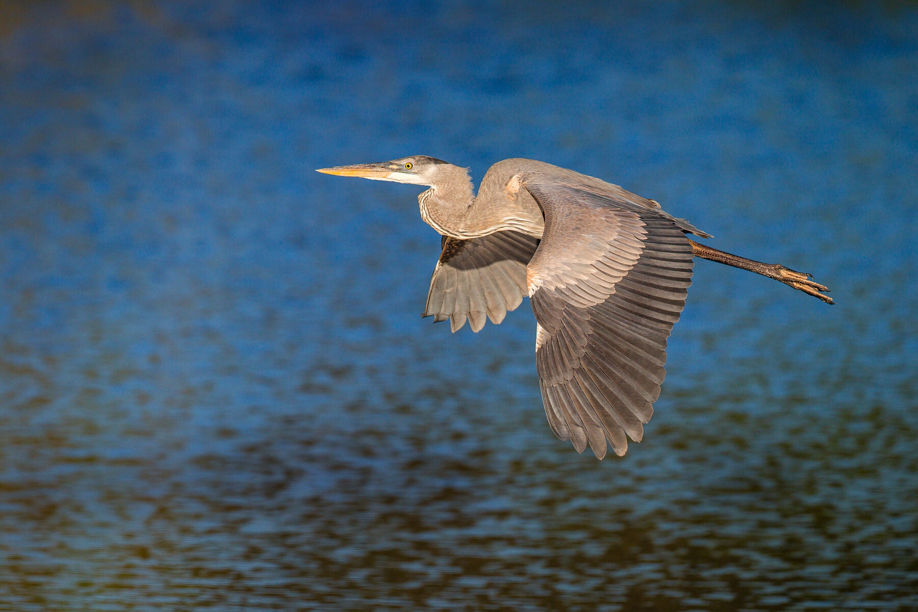 This colour landscape (horizontal) print of a Great Blue Heron (Ardea herodias) is created from a photograph taken in Florida, US. The Great Blue Heron is the largest Heron in North America at almost 4ft (1.2m) high. Like other Herons it eats small fish, frogs, crabs and other small creatures. It finds these by walking slowly through the lakes, rivers and swamps where it lives.