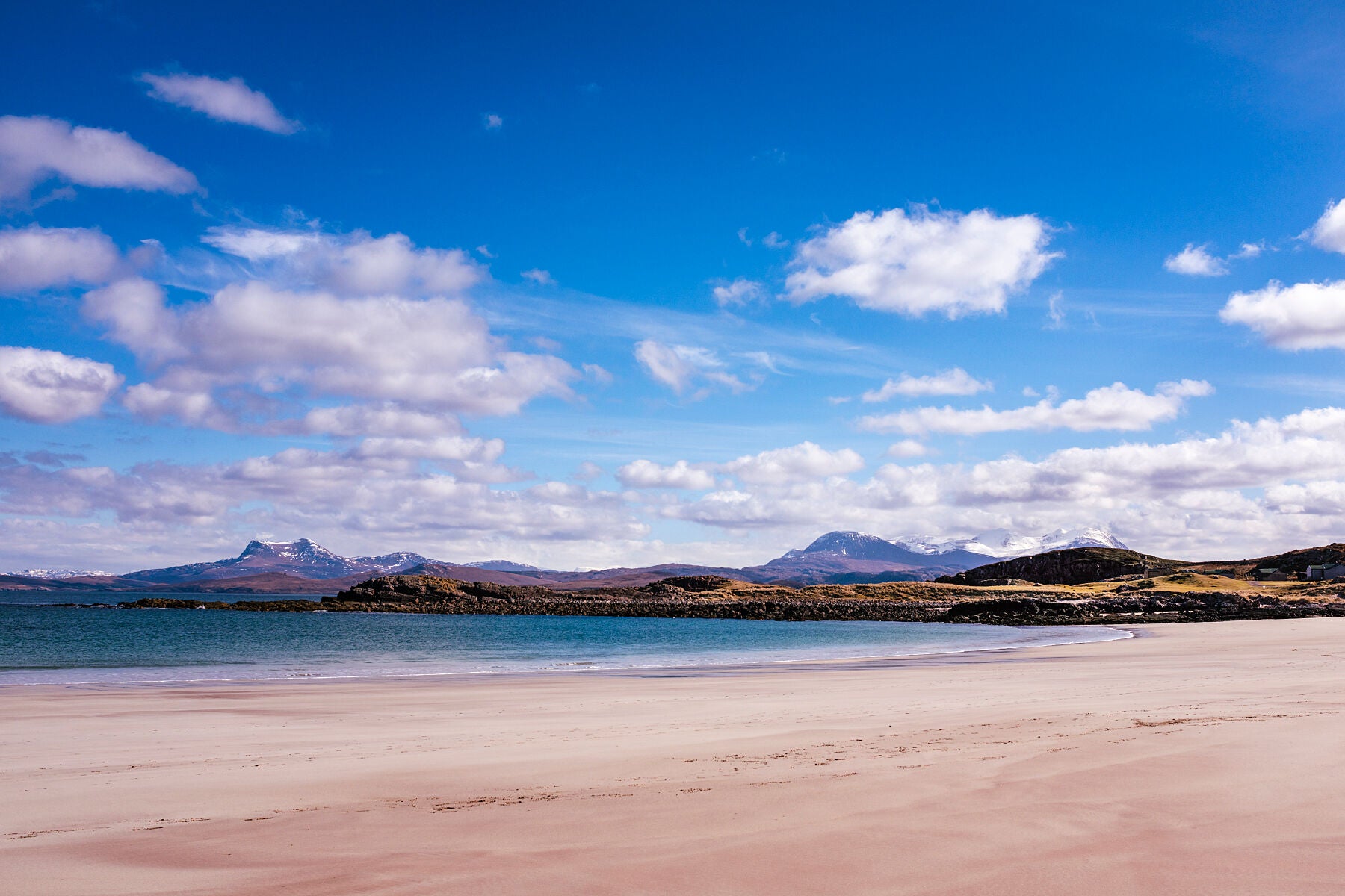 I really enjoy photography with like-minded people and my visit to Wester Ross in Scotland was no exception. Somehow the enthusiasm becomes infectious and great work can be produced. This landscape (horizontal) format colour print was created from a photograph I made looking north from the amazing beech at Mellon Udrigal. The clear air really made the distant twin peaks of Beinn Goblackarh stand out.
