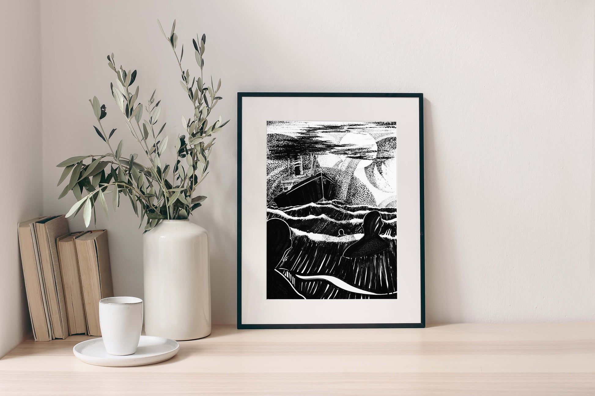 The work is digitised and printed by Graham Saxby to fine art archival standards.