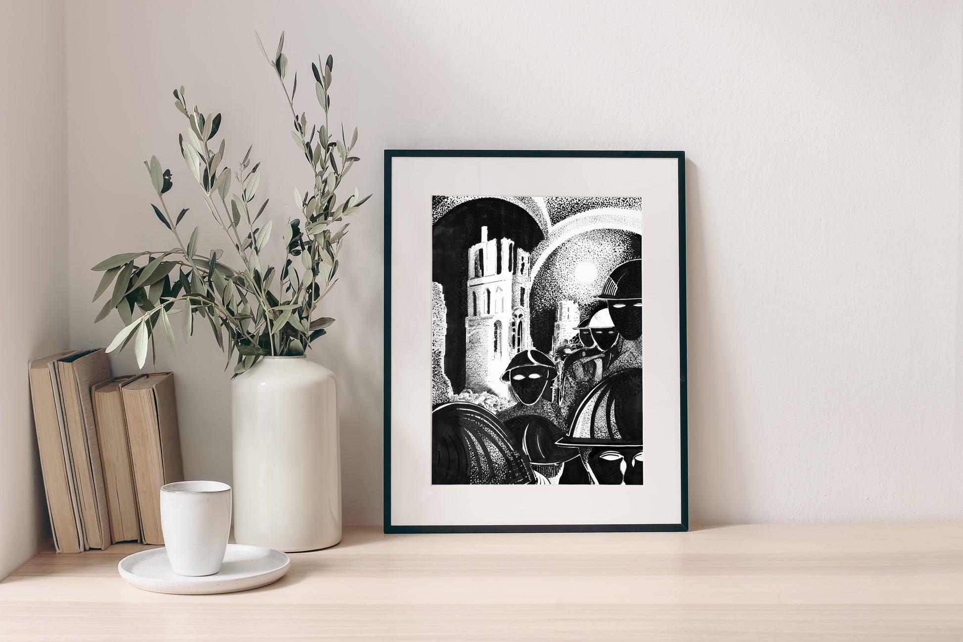 The work is digitised and printed by Graham Saxby to fine art archival standards.