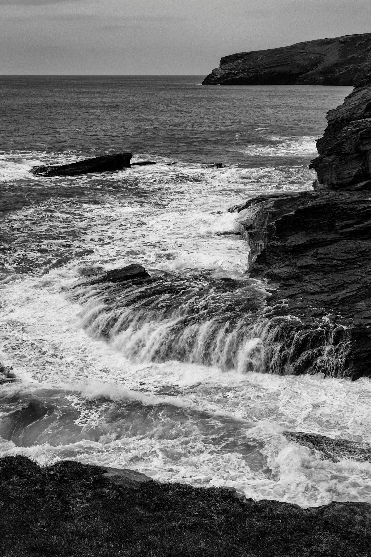 Trebarwith Strand is just over two miles south west of Tintagel on the north coast of Cornwall, England. It has a sandy beach about a mile long but is cut off by the sea and then floods at high tide. The rocky entrance can produce some spectacular seas and the small island of Gull rock can make for some great photographs.
