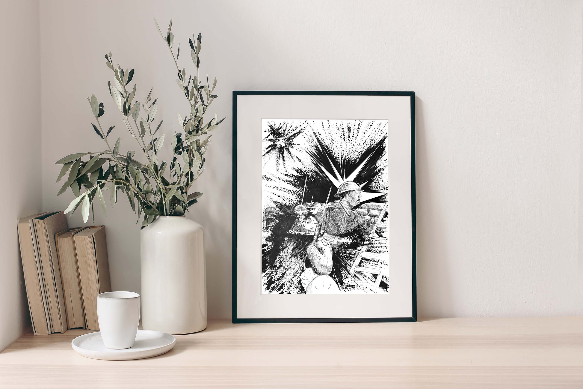 The work is digitised and printed by Graham Saxby to fine art archival standards.